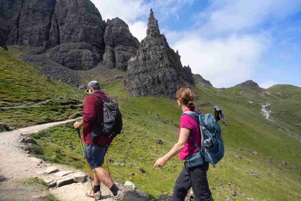 Walking up to the Old Man of Storr on the Isle of Skye.